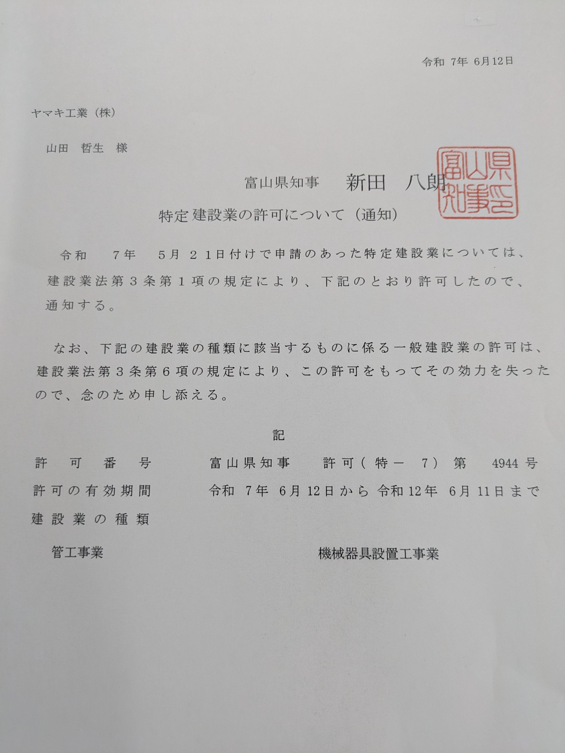 私たちヤマキ工業株式会社は、 富山県南砺市を拠点に50年以上の実績をもつ、 建築給排水、消雪設備および 工場生産設備等の配管設備工事の会社です。