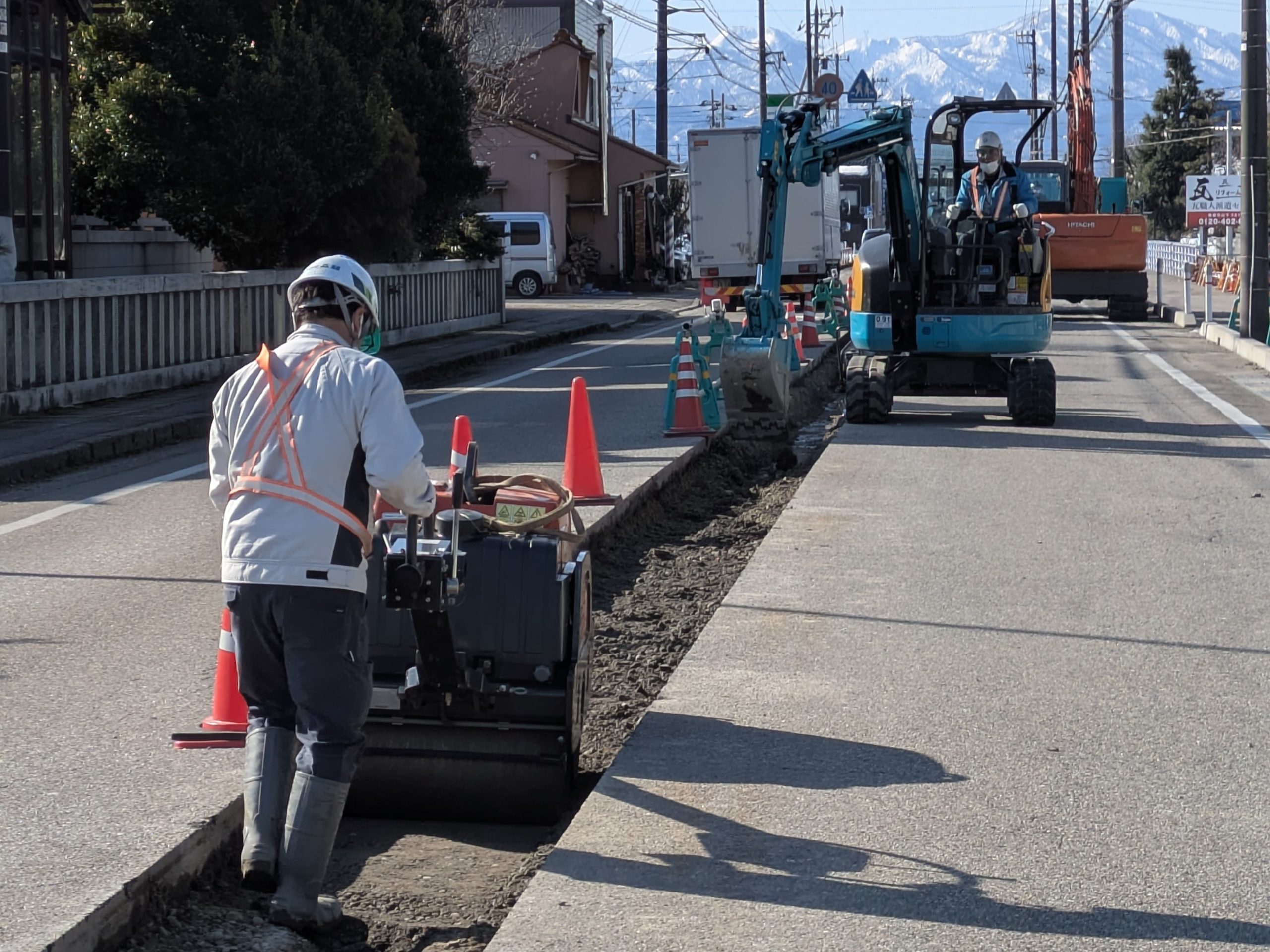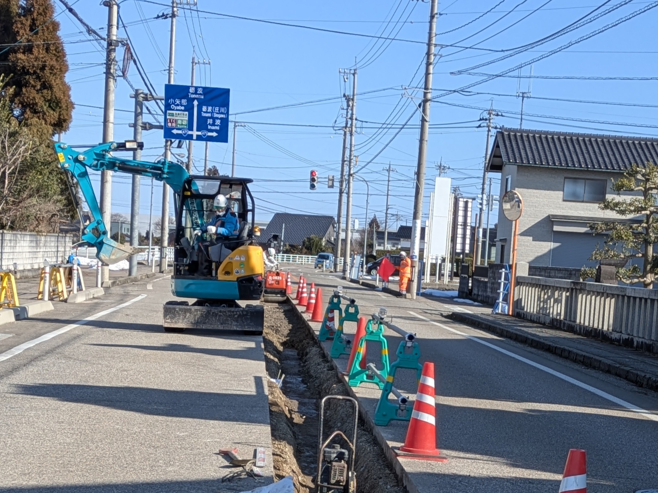 市道寺家高儀線消雪配管リフレッシュ工事始まりました! 安全第一で頑張ります!