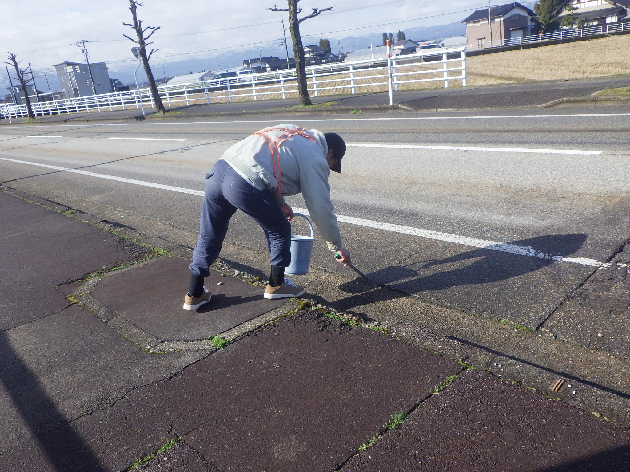 朝礼後8時過ぎから、社員総出で弊社前から百町交差点までの国道471号線の歩道のゴミ拾いを行いました。