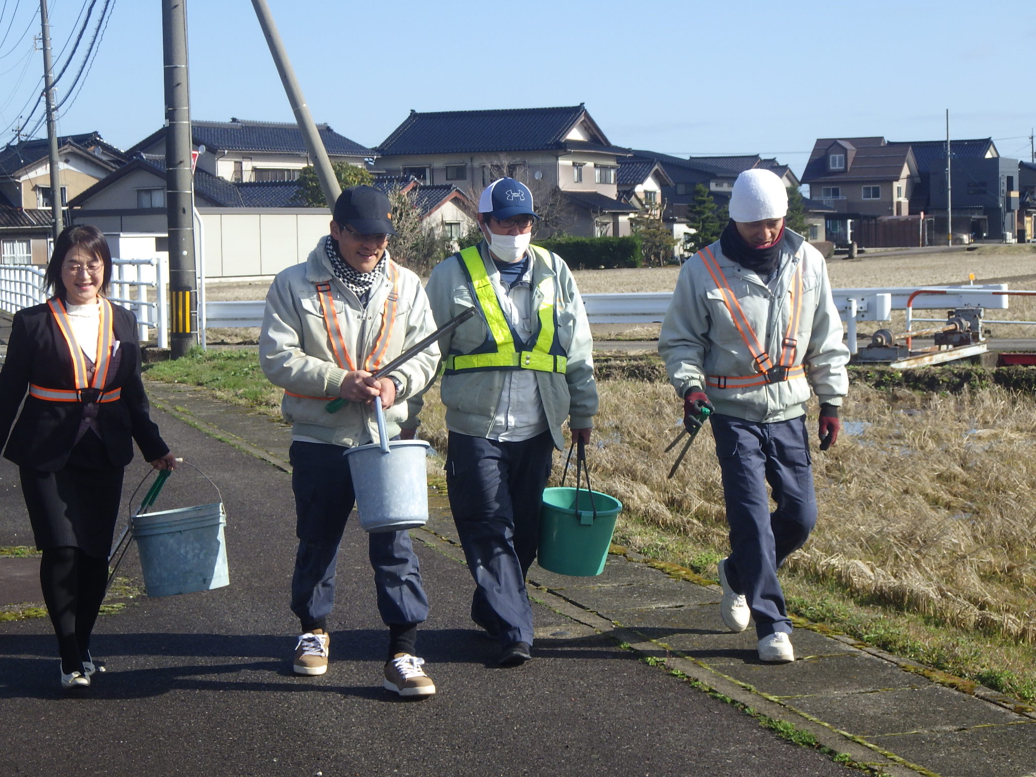 お天気に恵まれ、ぽかぽか陽気の中、皆ワクワクした気分でウォーキングを兼ねたような活動です。